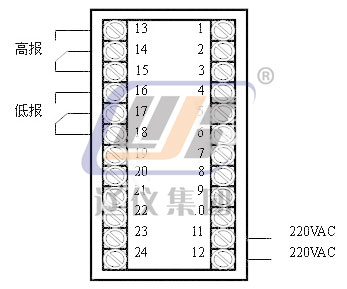● 報警控制:高限報警,低限報警, 報警燈及相應的繼電器輸出,同時伴有聲響和數(shù)字閃爍,當用戶確認后,按消音鍵可消除聲響和數(shù)字閃爍。